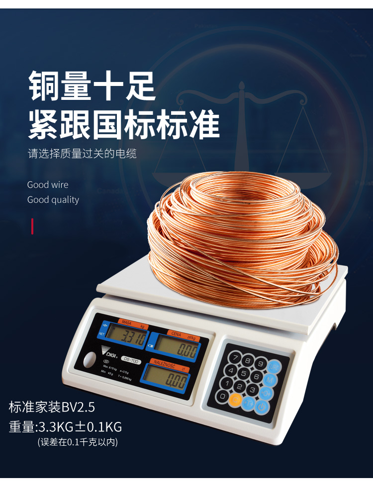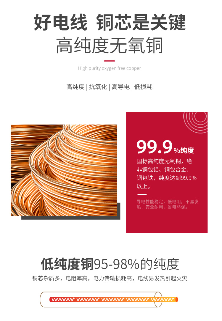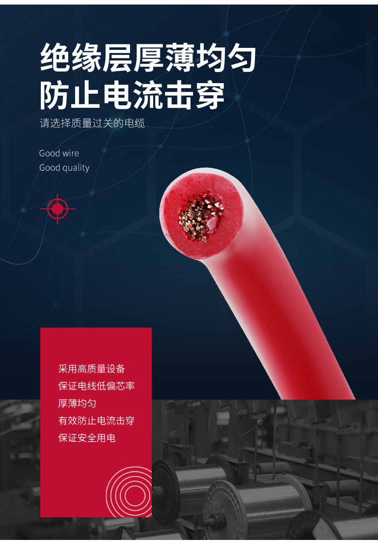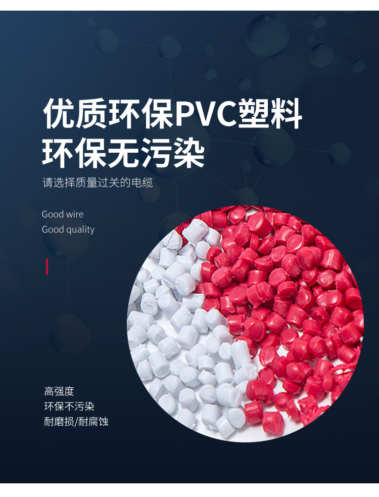 产品特点:导体采用优质超离纯度无氧铜,导电性好,电阻小,发热小,满足长时间大负荷使用。绝缘体采用聚氯乙烯新料,经久耐磨,使用寿命长。严格按照国家标准:GB/T5023-2008等同IEC60227-1997,JB/T8734-2012,IEC227-1979.获得中国强制性产品认证ccc,连年荣获资信等级AAA级,中国人民保险公司质量承保PICC